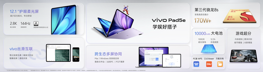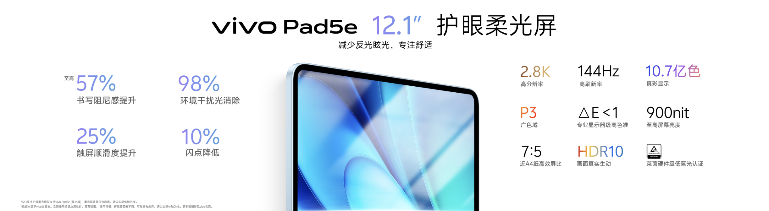 vivo Pad5e 定位年轻人优选的长续航学娱全能平板,机身轻薄却“生产力”媲美电脑,兼具同档领先的性能及护眼柔光的大屏视听。