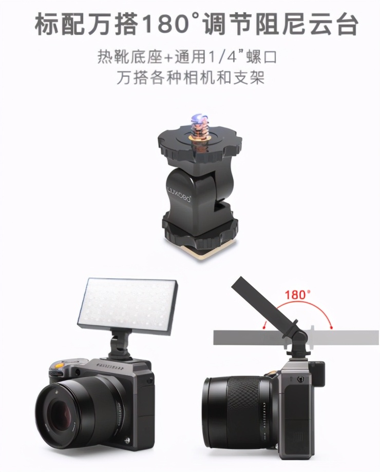 7、标配万搭180°调节阻尼云台热靴底座,万搭各种相机和支架,真的是一款很不错的补光神器,值得入手~